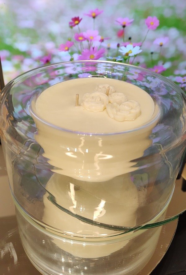 Bellisima vela, un contenedor original, ideal para un centro de mesa o ese rincon especial de tu casa.