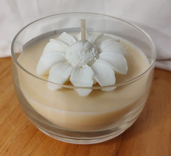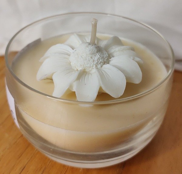 Envase de vidrio que contiene 80 gr de cera de soja y fragancias premium