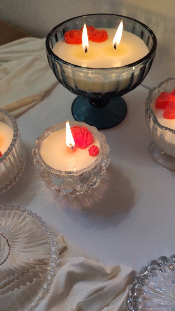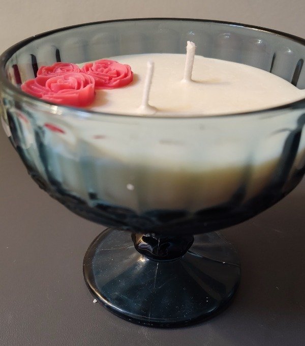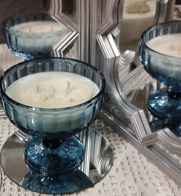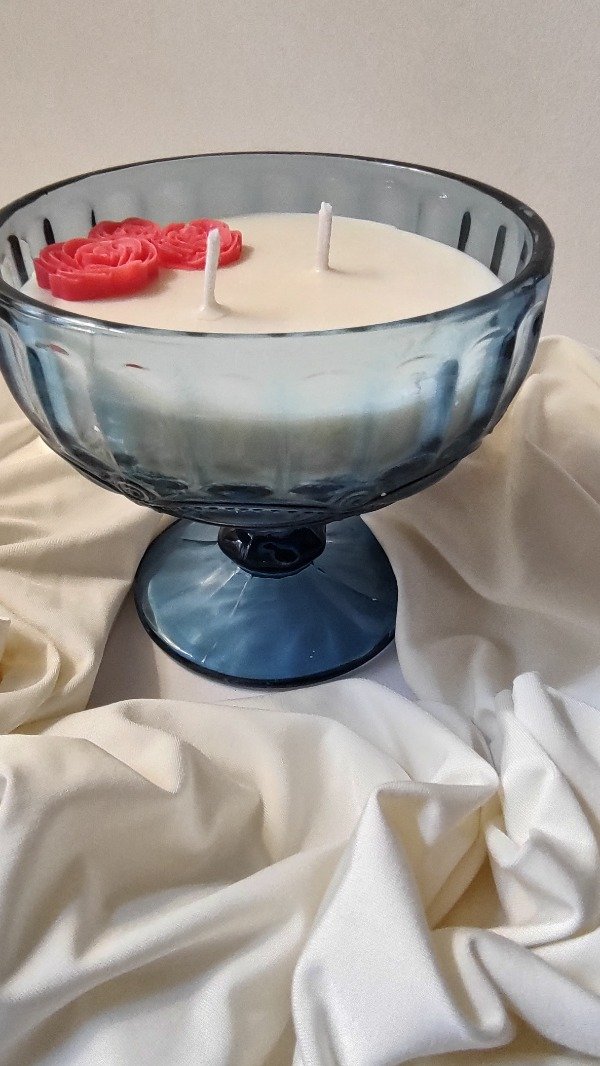 Hermosa copa labrada color azul, 250 cc de cera de soja en tu esencia favorita