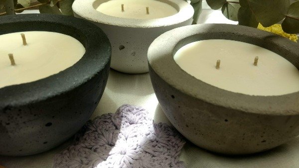 Hermoso cuenco de cemento, 300 cc de cera de soja en tu esencia favorita: gardenia, lima verbena. magnolia, naranja pimienta, pepino melon, sandalo, tilo lavanda, vainilla, coco lima, cookies, cafe en venecia, pochoclo.