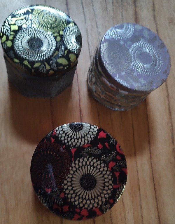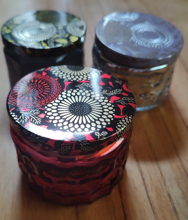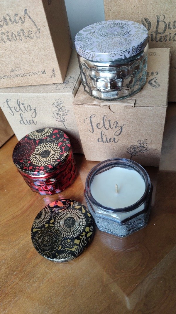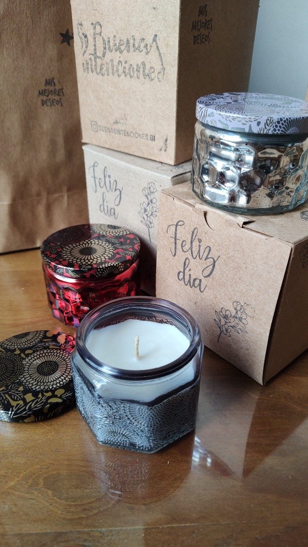 Hermosos frascos labrados con tapa. Vienen en rojo, plateado y negro. Lleva 100 gramos de cera de soja y fragancias premium. Dura 20 hs. Podes rellenar con nosotros el envase o utilizarlo como alhajero por ejemplo. Viene en el nuevo aroma Calma (bergamota, te blanco, sandalo, ambar suave, inspirado en el aroma Antropologie)