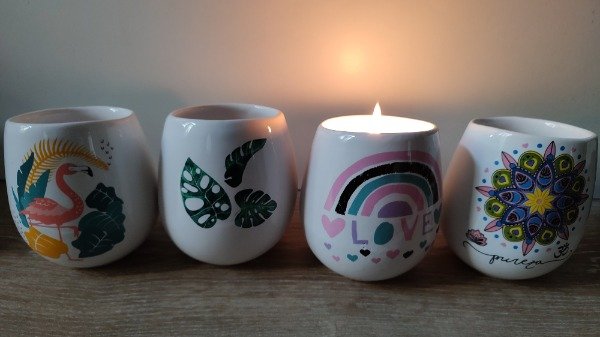 Hermoso mate de ceramica, con vela de cera de soja natural y perfumada con aceites premium.
